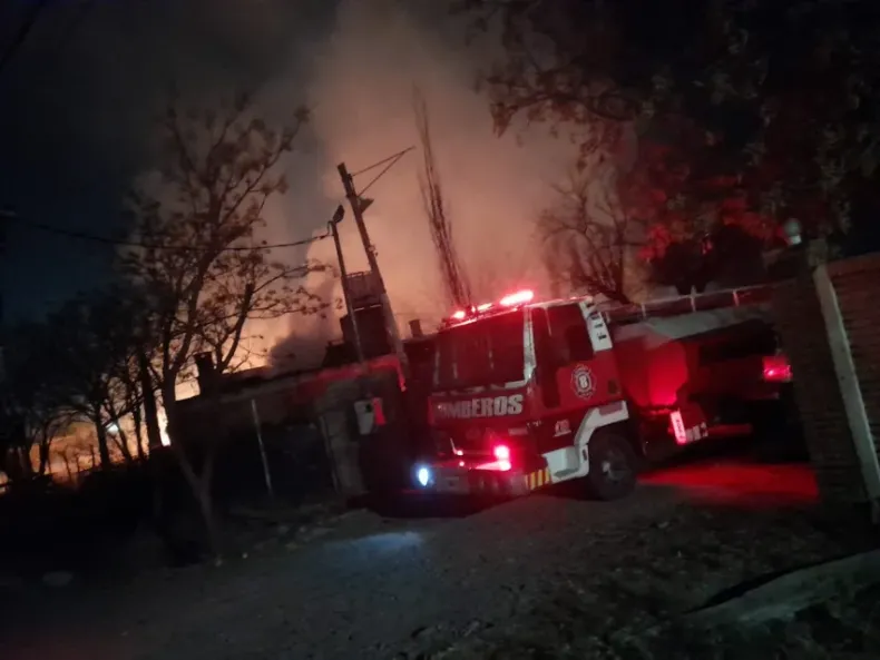 Un incendio, de grandes proporciones, se produjo este miércoles en una casa prefabricada, que los dueños de casa, utilizaban como depósito, en la zona del Médano de Oro, propiedad de un hombre de apellido Pereyra.