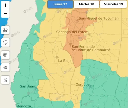El Servicio Meteorológico Nacional (SMN) ha emitido una alerta amarilla por tormentas en cinco departamentos de San Juan, ubicados en el este de la provincia. La alerta abarca para los departamentos: 25 de Mayo - Angaco - Caucete - San Martín - Valle Fértil