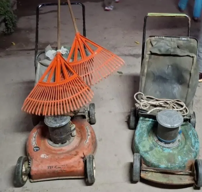 La camioneta contenía herramientas de trabajo como máquinas de cortar césped, tijeras y rastrillos.