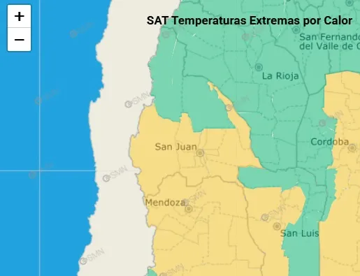 El Servicio Meteorológico Nacional (SMN) emitió un alerta amarilla por altas temperaturas en gran parte de San Juan. Este jueves, se espera que el termómetro marque hasta 38 grados, con cielo parcialmente nublado y viento del sector Noreste.