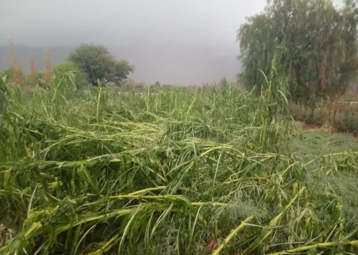 La tormenta también causó estragos en las chacras de la localidad de San Roque, donde el fuerte viento y el granizo dañaron cultivos, generando pérdidas significativas para los productores locales.