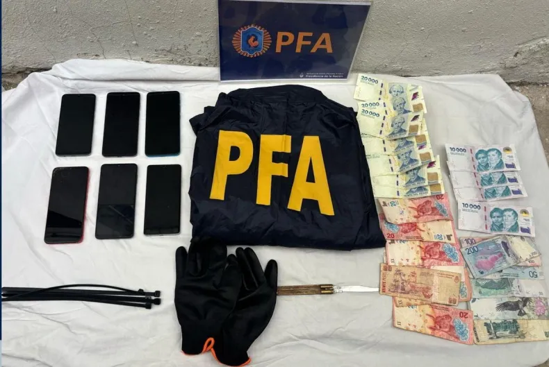 Asimismo, se incautaron un automóvil de alta gama vinculado a la investigación, una moto, 186.000 pesos argentinos, una campera con la inscripción de la Policía Federal Argentina, gran cantidad de precintos, 8 teléfonos celulares y documentación de interés para la causa.