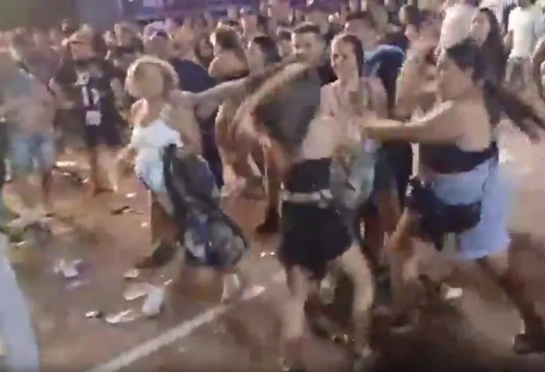 El espectáculo fue interrumpido momentáneamente por la pelea, mientras la producción desde el escenario permanecía atónita ante lo ocurrido. Finalmente, personal de seguridad privada, junto con algunos efectivos policiales, logró controlar la situación, aunque hasta el momento no se ha informado sobre personas detenidas o heridas de gravedad.