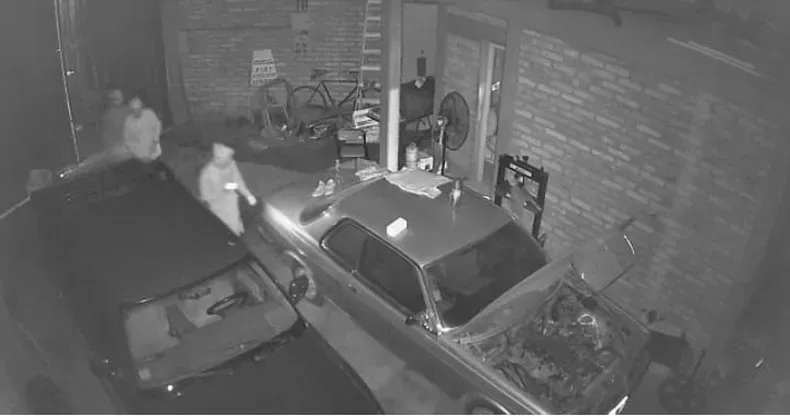 En las cámaras de seguridad del galpón se puede apreciar como al menos seis sujetos comienzan a buscar y cargar diferentes herramientas y máquinas del taller mecánico, ubicado sobre lateral de avenida de Circunvalación y calle Lamadrid, cerca de San Lorenzo, en la zona de Concepción, en Capital.