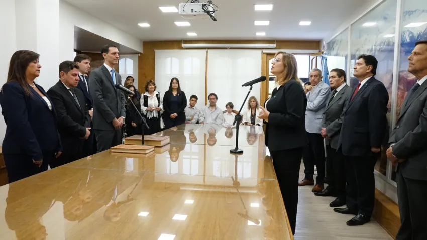 La presidenta de la Corte de Justicia, Adriana García Nieto, tomó juramento a Mariano Daniel Pedrotti y Roberto Jorge Montilla como jueces de Primera Instancia del Fuero Penal y a Andrea Viviana Insegna, en el cargo de Fiscal de Primera Instancia.