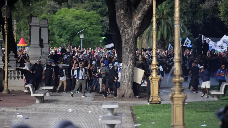 La manifestación, que los jubilados suelen realizar todos los miércoles, terminó en enfrentamientos con la policía, destrozos, heridos y 124 detenciones, aunque la mayoría de los detenidos ya han sido liberados. Un fotoperiodista recibió un impacto en la cabeza y se encuentra luchando por su vida en el hospital Ramos Mejía. A diferencia de otras protestas, en esta ocasión se sumaron barras bravas de clubes de fútbol y militantes políticos, quienes atacaron a la policía.