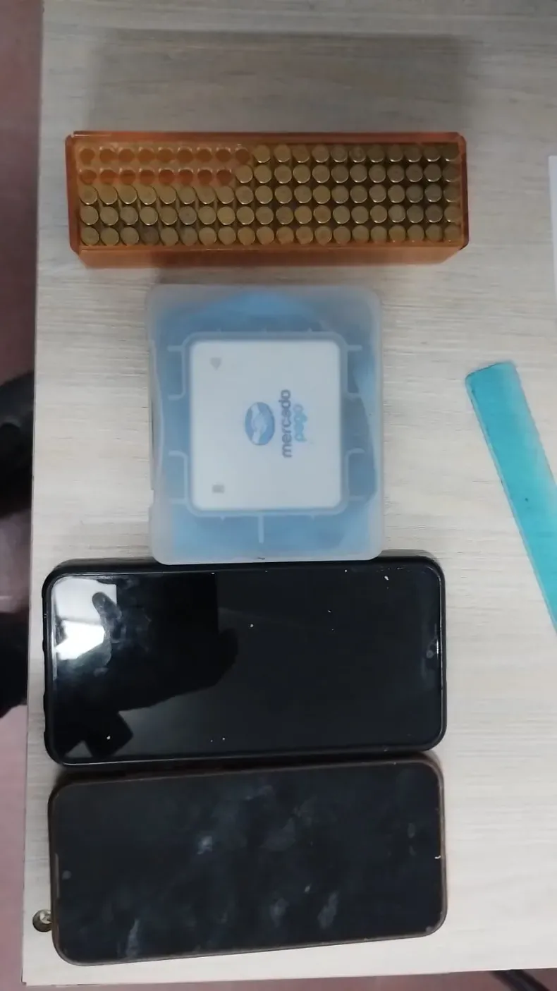 Fuentes policiales oficiales, señalaron que los sujetos ocultaban debajo de prendas, una caja de plástico conteniendo 83 cartuchos de proyectiles calibre 22 y dos celulares, los cuales no supieron desbloquear, lo que hizo suponer que estaban frente a dos delincuentes, dijeron las fuentes.