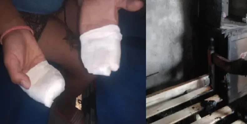 La mujer terminó con las dos manos quemadas cuanto intento apagar el fuego intencional, ya que le arrojaron al menos una bomba molotov para que abandone el lugar.