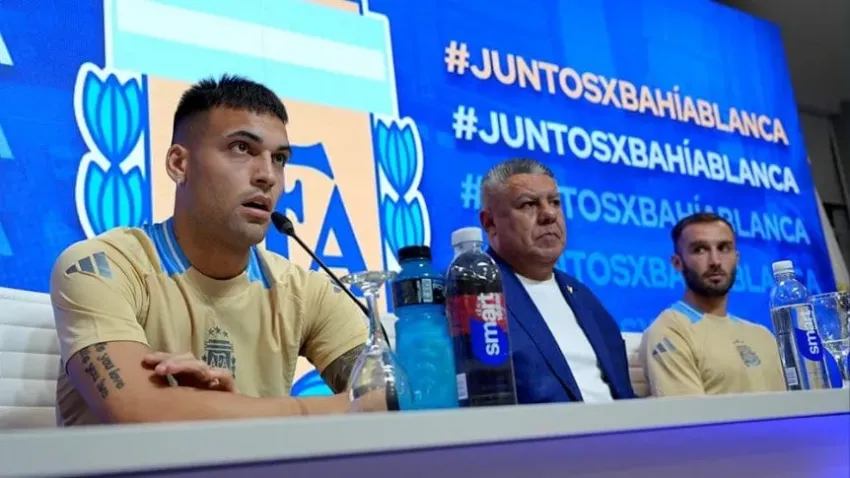 "Dentro de lo que podemos en la fecha FIFA, creíamos que teníamos que hacer algo. Es importante darle una mano a la gente que está sufriendo", añadió el DT, quien estuvo acompañado por el presidente Claudio Tapia y también por Lautaro Martínez y Germán Pezzella, los dos bahienses del conjunto nacional.