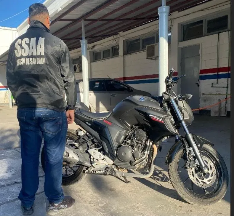 Entre los rodados recuperados, hay una moto marca Yamaha FZ 250cc, la que, al verificar la chapa patente, se constató que presentaba algunas adulteraciones en los sistemas de seguridad como número de motor y chasis.