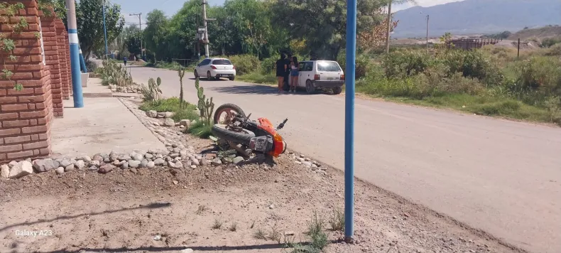 Un motociclista intentó sobrepasar a un auto en albardón, pero le salió mal la maniobra.
