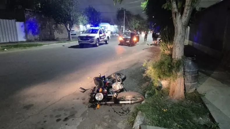 Según informaron fuentes policiales, el accidente involucró a un automóvil Toyota Corolla, color gris, conducido por Juan Bautista Troncoso, de 21 años, quien circulaba por calle Juan Jufré en dirección oeste. Al llegar a la intersección con calle Sarmiento, colisionó con una motocicleta marca Motomel S2 150 cc, de color negro, manejada por Ángel Fernández , de 22 años, quien transitaba hacia el sur.