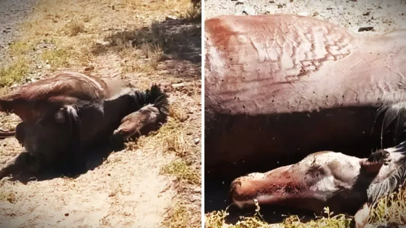 Vecinos de Caucete quedaron conmocionados este jueves por la tarde al encontrar un caballo mutilado tirado al costado de un canal de riego, en calle Caseros.