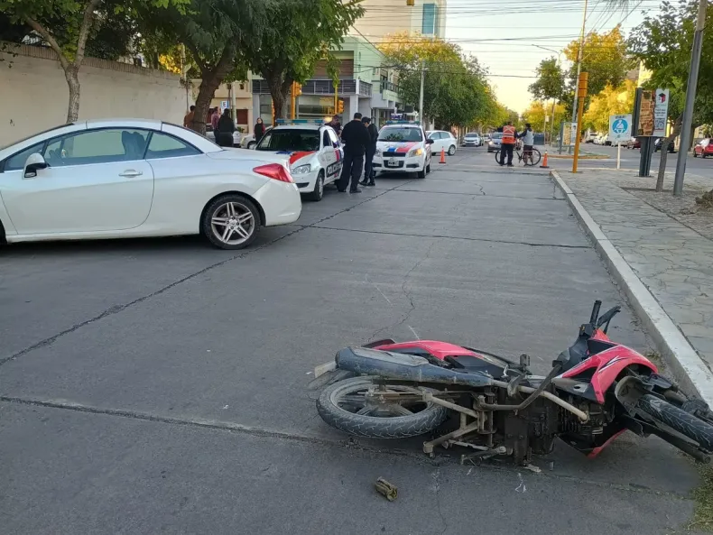 Este rodado era conducido por Juan Francisco García (84), que intentaba sacar su vehículo desde su garaje, ubicado en un puente que da sobre avenida Alem. Al realizar marcha atrás, el conductor no advirtió la presencia de la motociclista, quien impactó la parte trasera izquierda del Peugeot, cayendo al pavimento, en la orilla del bulevar de la avenida.