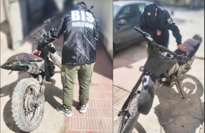 En el lugar, encontraron una moto, tipo cross, que presentaba su número de motor limado y número de chasis adulterado.