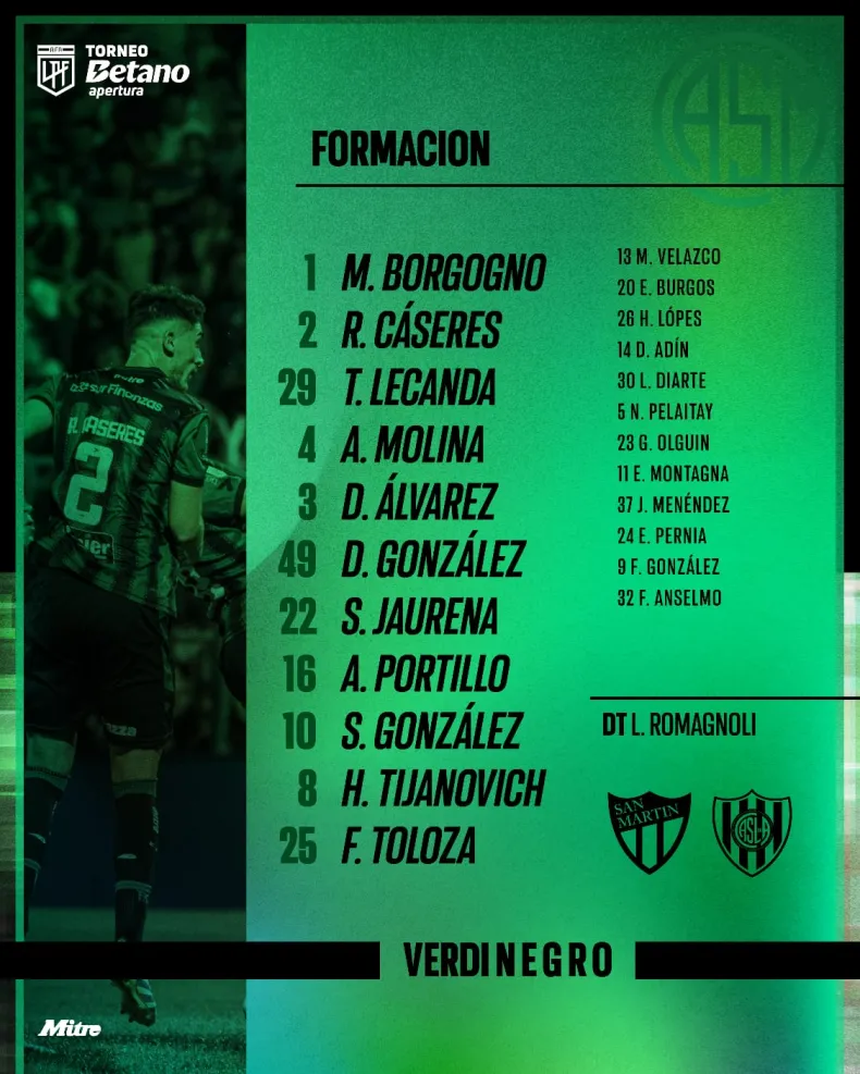 San Martín ya está confirmado para jugar con San Lorenzo y el entrenador Leandro Romagnoli se decidió por un equipo raro cargado de volantes en la zona media