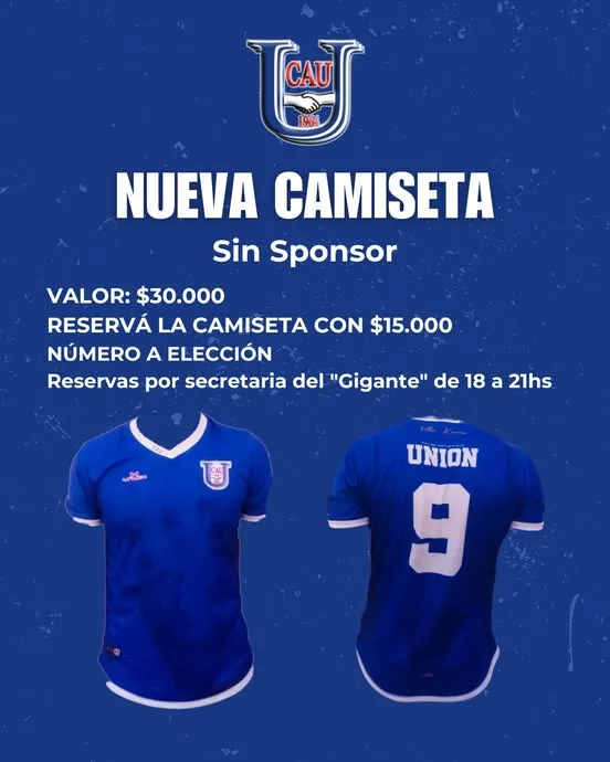 Unión jugó frente a López Pelaez con una camiseta azul pero sin ninguna publicidad. Este modelo es igual que al que se usaba en los años 80 pero en los tiempos que vivimos es dificil no tener un sponsor. Los dirigentes Azules lo explicaron.