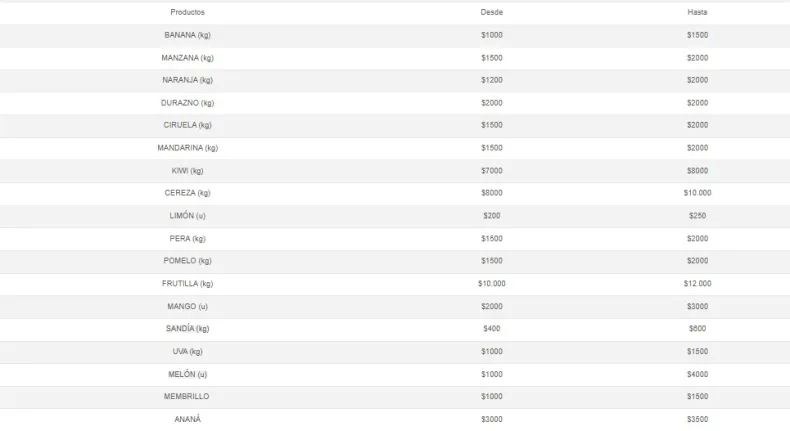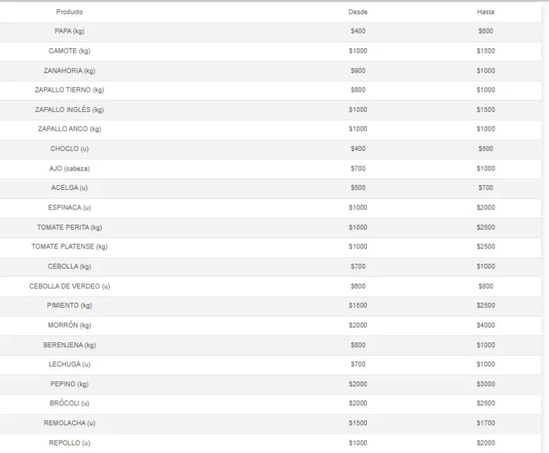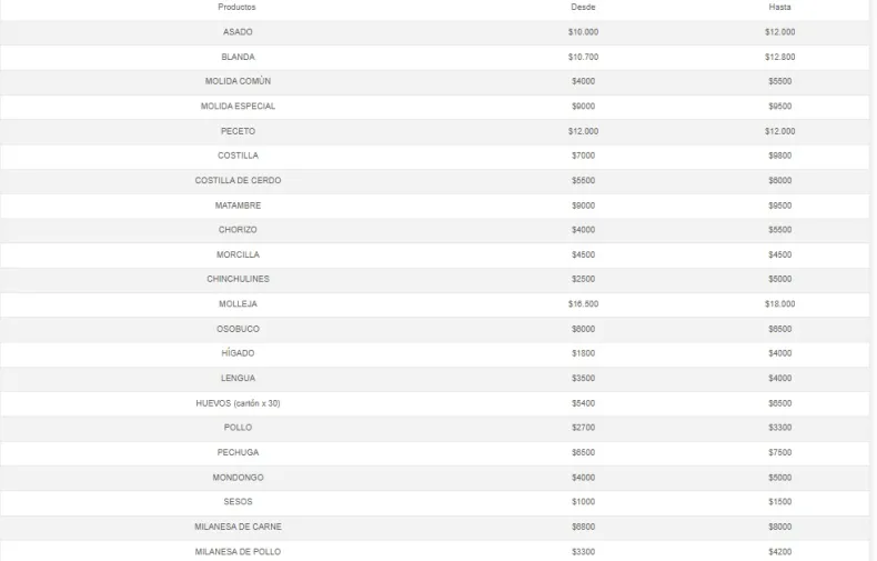 La Feria de Frutas y Verduras y el Mercado de Abasto, publicaron sus precios semanales con importantes aumentos, sobre todo en la carne.