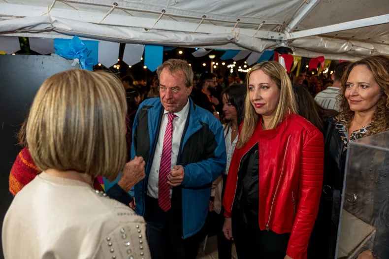 La jornada contó con la presencia del embajador de Alemania en Argentina, Dieter Lamlé, y de la ministra de Gobierno, Laura Palma, quienes recorrieron la muestra montada en el lugar. El recorrido comenzó en el stand del Instituto Alemán y el Círculo Alemán, donde se presentó una exposición en conjunto con el Archivo General de la Provincia, y continuó con visitas a puestos de artesanos y productores locales, con degustaciones de platos típicos de ambas regiones.