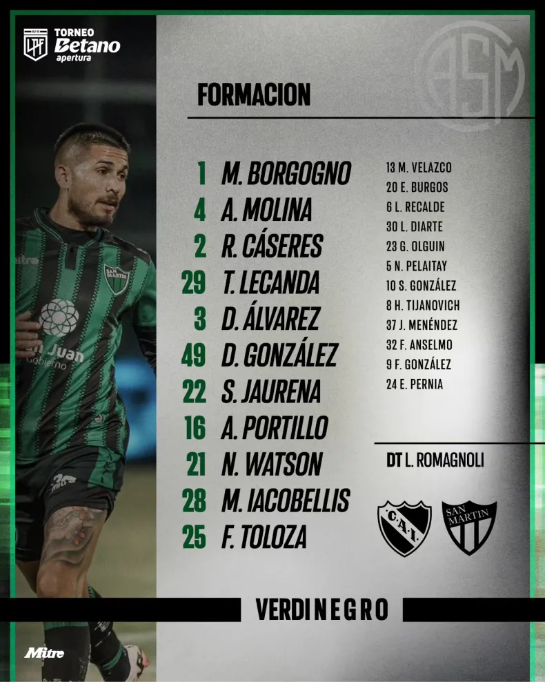 Dos son las variantes que realiza el entrenador de San Martín Leandro Romagnoli de cara al juego con Independiente.