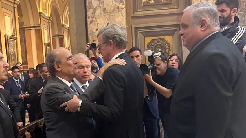 En el lugar se encuentran el jefe de Gabinete, Guillermo Francos; el ministro de Relaciones Exteriores, Gerardo Werthein, y el secretario y subsecretario de Culto y Civilización, Nahuel Sotelo y Agustín Ezequiel Caulo, respectivamente.