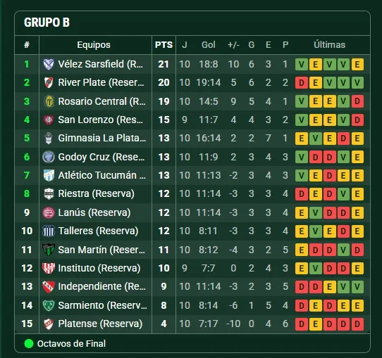 Con esta derrota y el resto de los resultados de la zona B, San Martín pasó del 6° lugar al 11° y quedó fuera de la zona de clasificación a octavos de final cuando todavía quedan seis fechas por jugar.