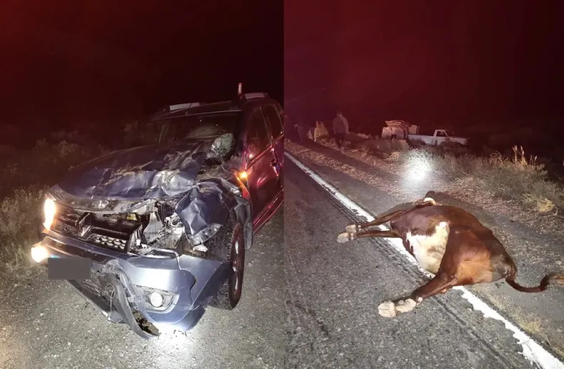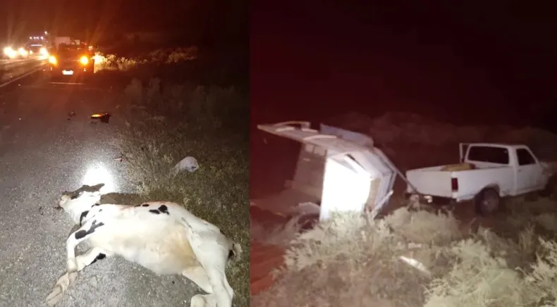 Tres camionetas chocaron con vacas sueltas en Ruta 40, en Jocolí, Lavalle, causando la muerte de los animales y daños materiales, pero sin personas heridos.