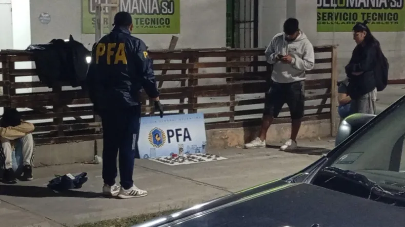 El procedimiento estuvo a cargo de los efectivos de la Policía Federal de San Juan, y lograron aprehender a dos presuntos narcos con sustancias, elementos de cortes, entre otras cosas.