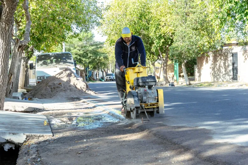 El municipio de Rivadavia avanza con nuevas obras en el barrio Foeva, donde se construyen cordones sobre calle Esteban Echeverría.