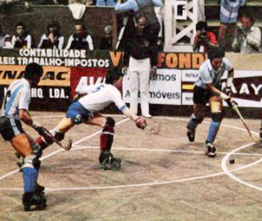 El 1 de mayo de 1982, argentinos e ingleses se enfrentaron en la jornada inaugural del Mundial de Hockey sobre Patines en Barcelos, Portugal.