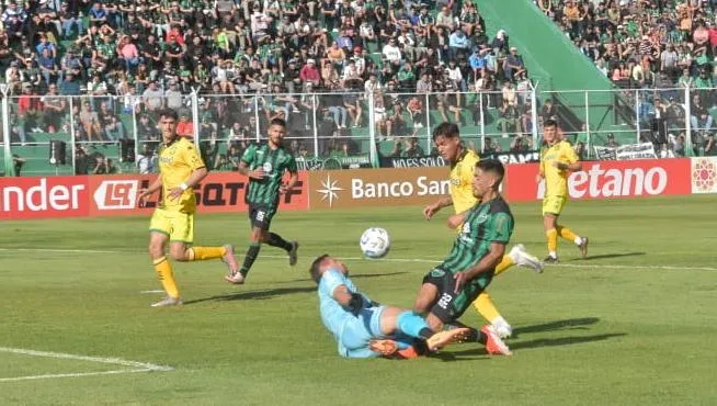 Hoy el Verdinegro lo está sufriendo con el arbitraje en tres intervenciones claves y determinantes del juez. La primera en una jugada clara en la cual Jaurena entrando en el área es derribado por el arquero Carranza que salió con los pies para adelante y lo hizo volar al jugador de San Martín.