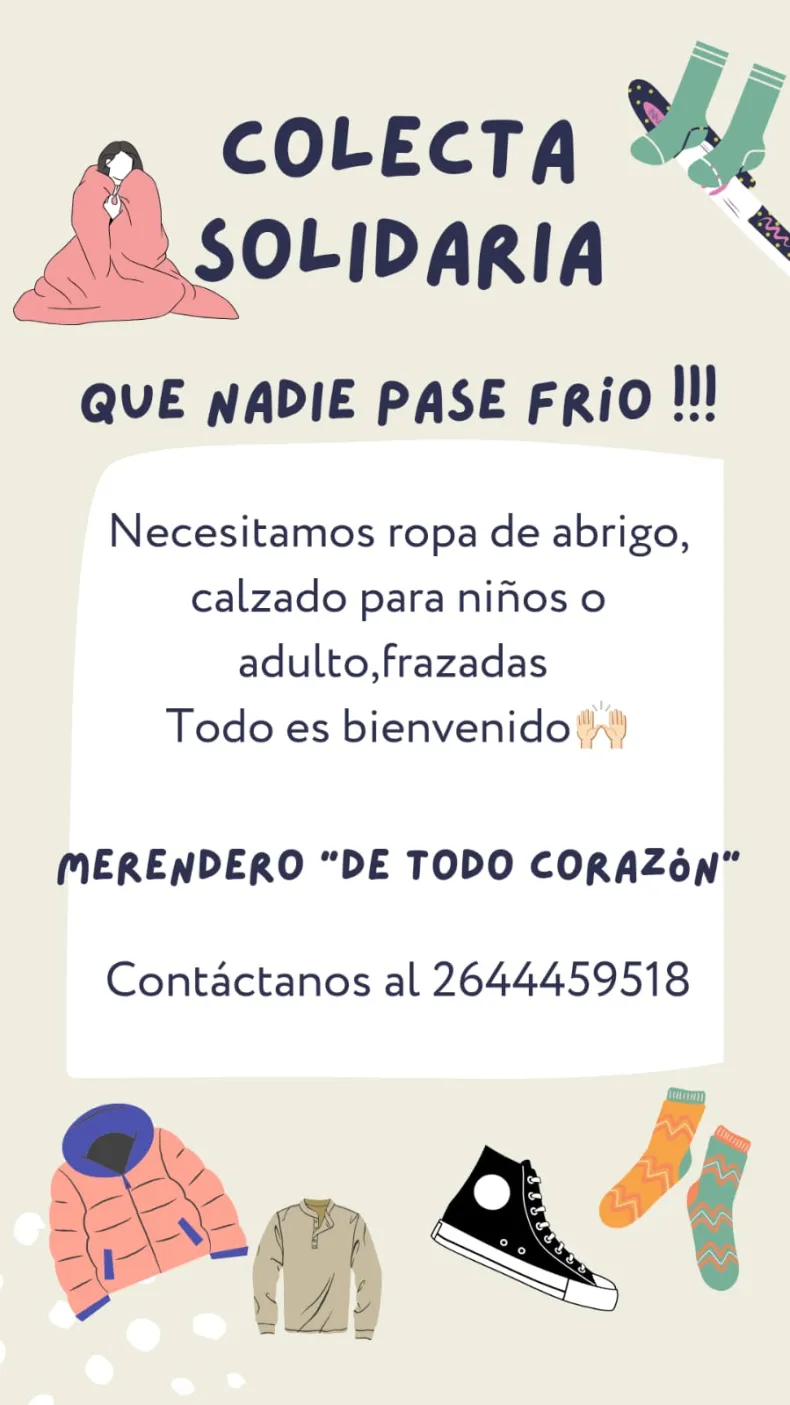 Hoy, "Todo Corazón" necesita que la comunidad vuelva a tender una mano. Con la llegada del invierno, lanzaron una colecta solidaria bajo el lema "Que nadie pase frío", y están recibiendo ropa de abrigo, calzado para niños y adultos, y frazadas. "Todo es bienvenido", dicen con gratitud desde el merendero.