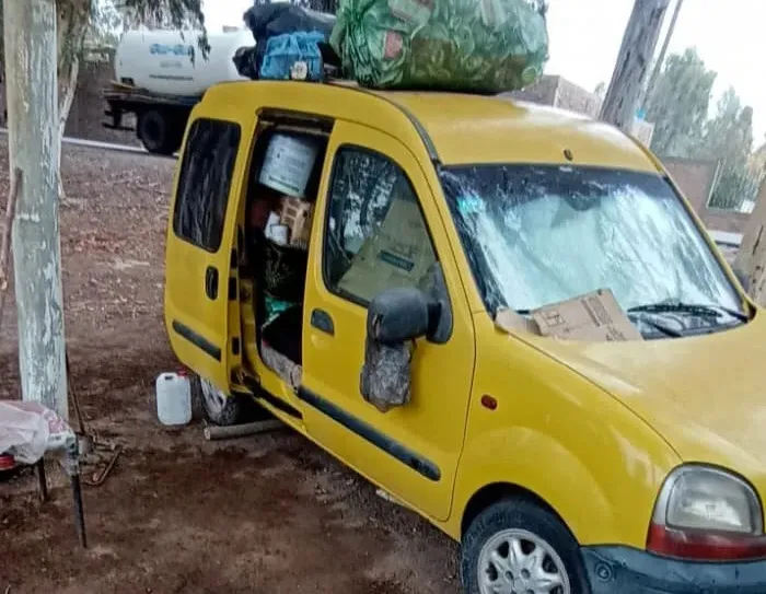 Elio César Ortiz tiene 60 años y vive en su utilitario estacionado en calle 5, pasando General Acha, límite entre Rawson y Pocito, desde hace dos meses.