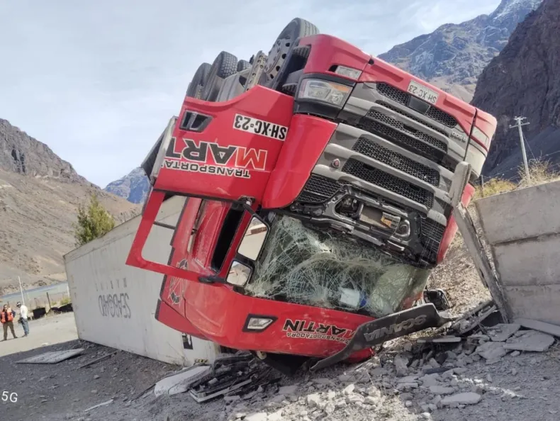 Un camión se dio vuelta de camino a Chile