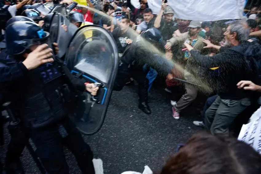 Fuerzas federales aplicaron el protocolo antipiquetes y hubo heridos, entre ellos el padre "Paco" Olveira. En Diputados se discuten reformas jubilatorias.