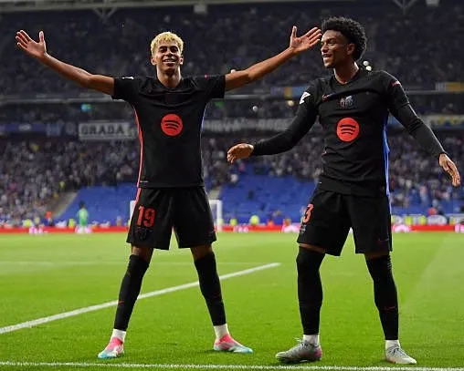 A los 8 minutos, Lamine Yamal anotó el primer gol del partido. El extremo derecho realizó una espectacular jugada individual que terminó con un zurdazo que descolocó al arquero Joan García Pons.