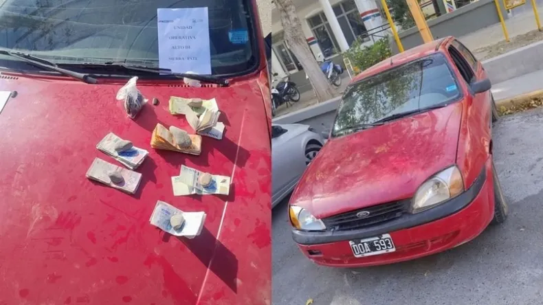 Durante la requisa del rodado, los efectivos detectaron que el conductor llevaba una mochila, que al solicitarle que mostraran su contenido y su interior una bolsa transparente con un envoltorio de nailon negro, dentro del cual se hallaron sustancias ilegales.