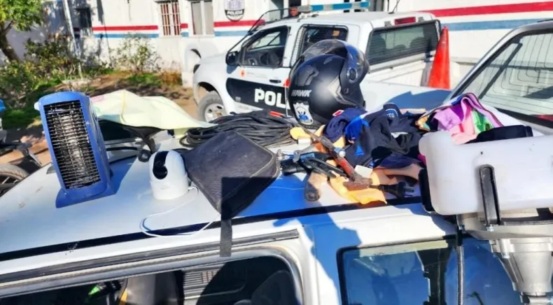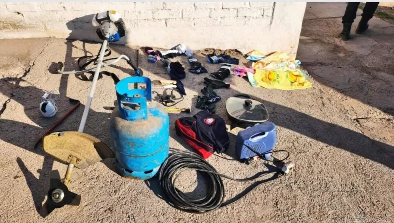 Entre los objetos secuestrados habían una garrafa, una desmalezadora, una camara de video, una estufa, una sarten e indumentaria.