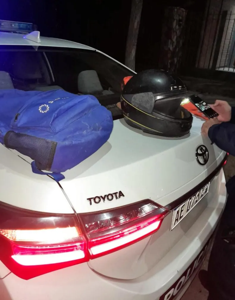 Al notar la presencia policial, los sujetos emprendieron la fuga y arrojaron un casco negro.