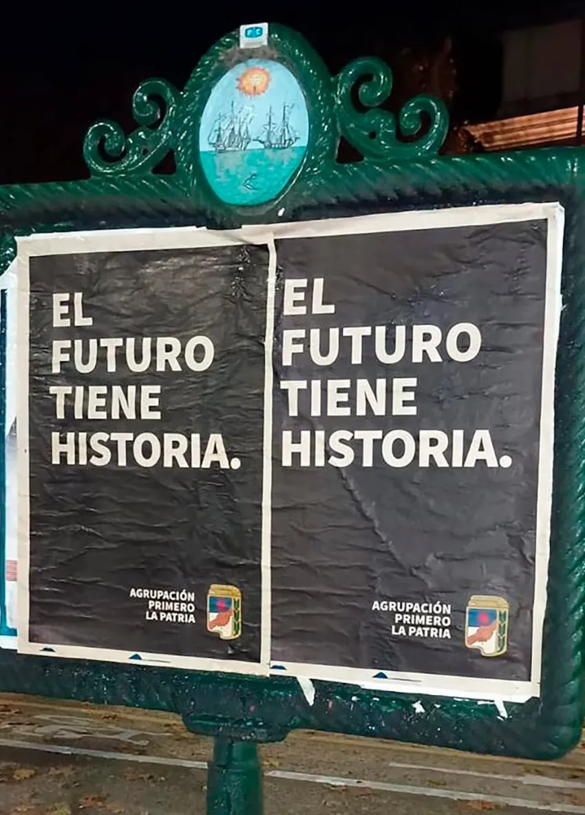 Los afiches aparecieron en la madrugada de este jueves y fueron la primera señal visible de la existencia de una nueva agrupación peronista. Con las frases "Nadie se salva solo" y "la historia tiene futuro" las imagenes callejeras llevaron la firma: "Primero la Patria".