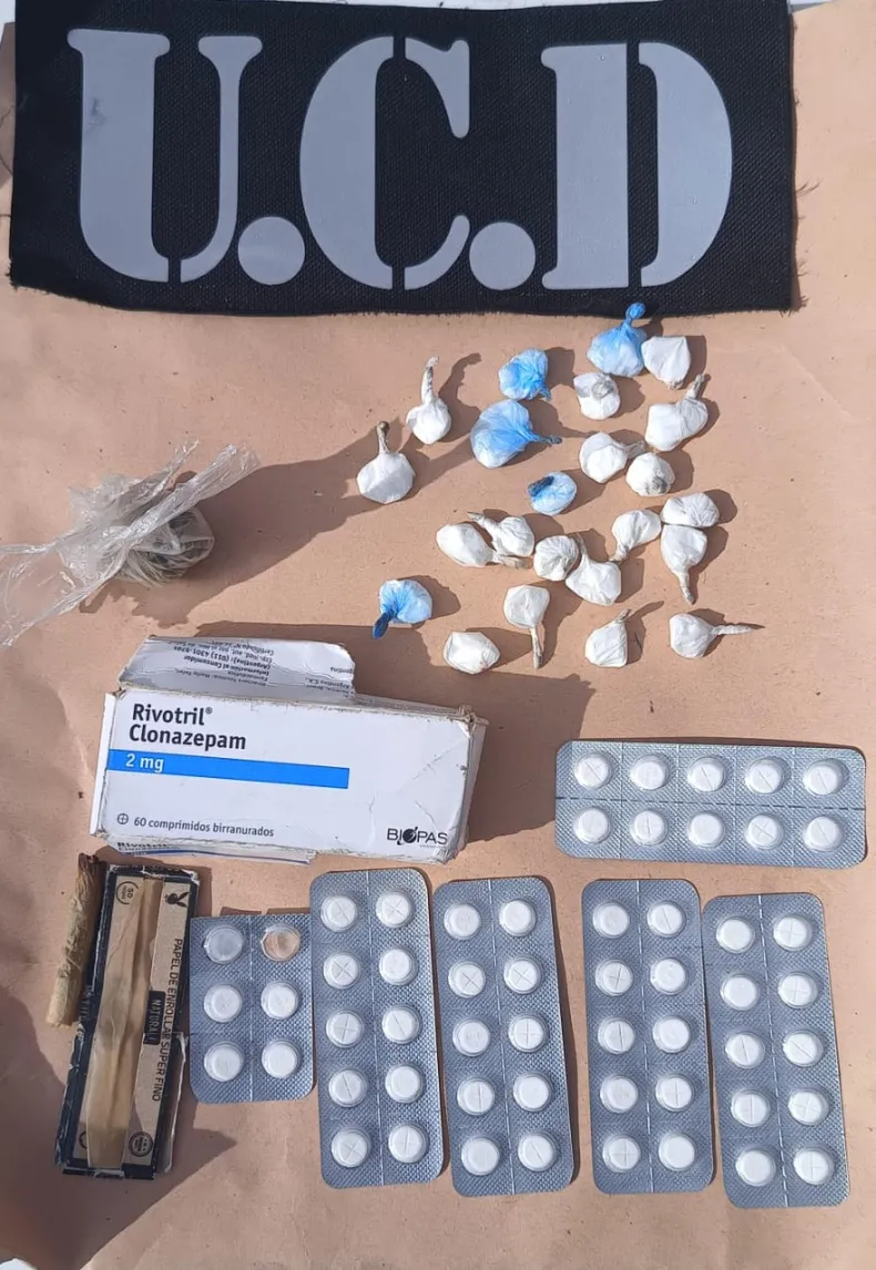 Durante la intervención policial, se incautaron los siguientes elementos: cinco envoltorios de cocaína con un peso total de 15 gramos; un envoltorio de marihuana con un peso de 12 gramos; cincuenta y cuatro pastillas de Rivotril (Clonazepam); un cigarro armado de marihuana; un papel para armar; y un billete de $2.000 doblado, que contenía cocaína en su interior.