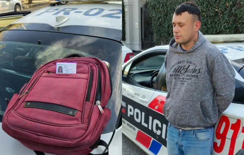 En inmediaciones de calle San Luis un sujeto, vestido con buzo gris, jeans claros y zapatillas negras, había sustraído una mochila color bordó a una joven, dándose inmediatamente a la fuga a pie.