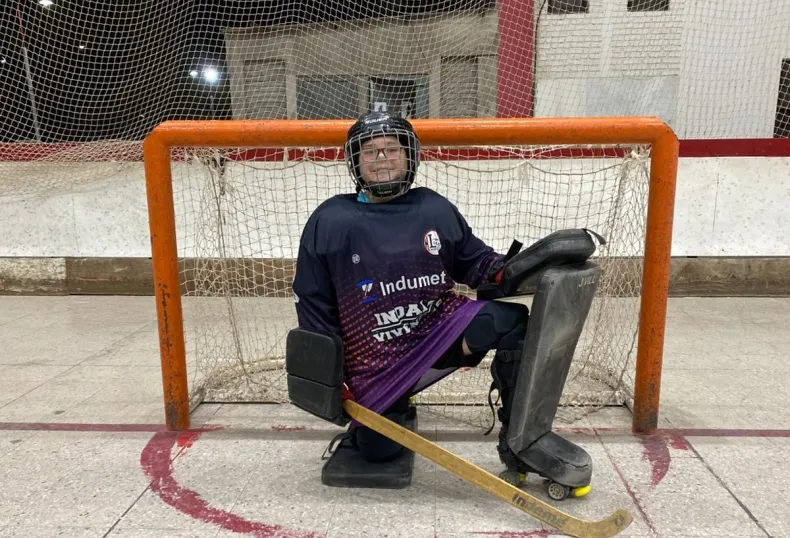 Juan Francisco Villa Aubone, no es un arquero de hockey, no es un chico con autismo es el súper héroe que lucha con stick y patines por ser un niño feliz.