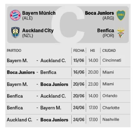 Domingo 15-06 13.00 Bayern Munich vs. Auckland City Zona C DAZN