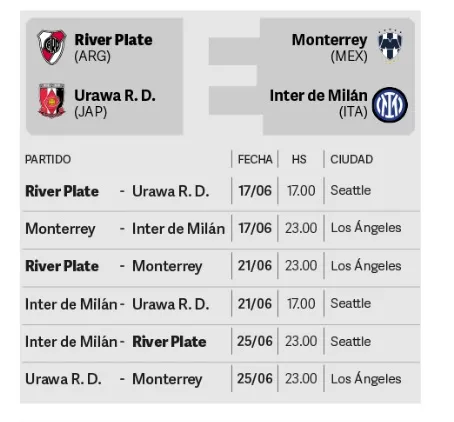 Martes 17-06 16.00 River vs. Urawa Reds Zona E Telesol