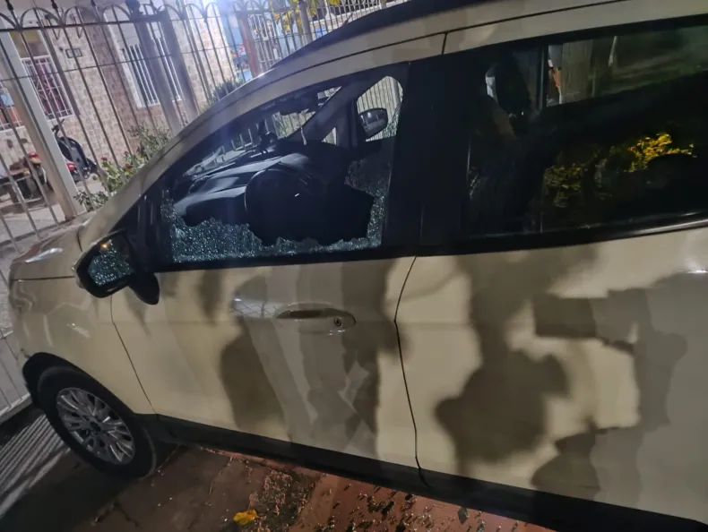 Los efectivos secuestraron el celular sustraído, una piedra gris y vidrios rotos.