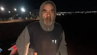 El hombre es de contextura mediana, tez trigueña, tiene cabello corto canoso, mide aproximadamente 1,60 metros, pesa unos 60 kilos, tiene ojos marrones, cara ovalada, boca chica y barba canosa y corta.