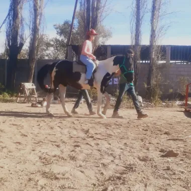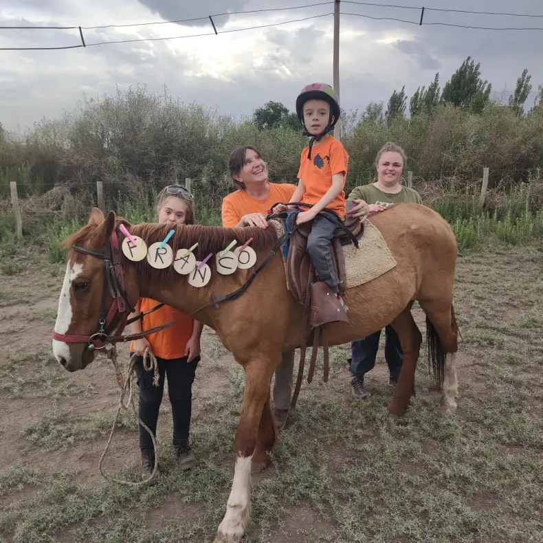 "Cuando volví en el 2010 a San Juan me propuse que la equinoterapia pudiera ser una herramienta que pudiera servir para ayudar a las personas. Anduvimos por Rawson, Zonda, Caucete y Médano de Oro. Empecé con dos monturas que tenía y un caballo que me prestó mi hermano. Hoy estamos acá con tres caballos (Apolo,Tiro al blanco y Shrek) y dos yeguas (Canela y Princesa)"