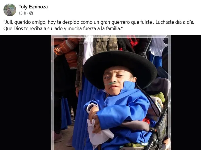 Este domingo, familiares y amigos lo despidieron con profundo pesar. En las redes sociales se multiplicaron los mensajes de cariño, admiración y despedida. "Juli, querido amigo, hoy te despido como el gran guerrero que fuiste. Luchaste día a día. Que Dios te reciba a su lado y mucha fuerza a la familia", escribió uno de sus allegados.