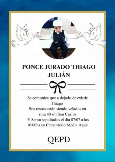 El departamento Sarmiento atraviesa un profundo duelo tras conocerse el fallecimiento de Thiago Julián Ponce, un niño de 12 años que desde su nacimiento enfrentó con valentía una compleja enfermedad: osteogénesis imperfecta, más conocida como "huesos de cristal", una condición que debilita los huesos y los vuelve extremadamente frágiles.